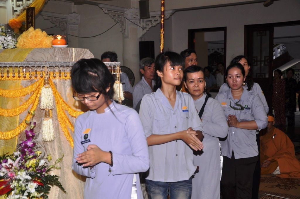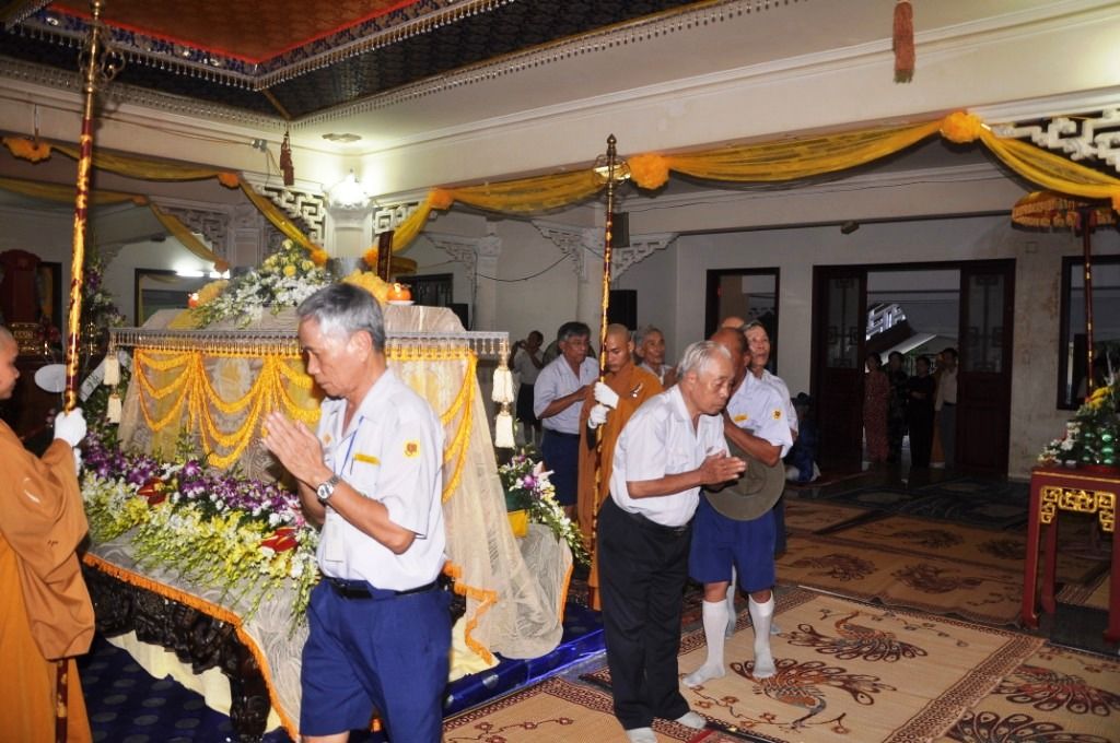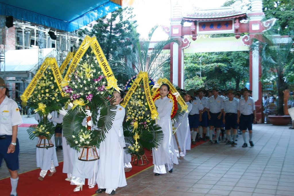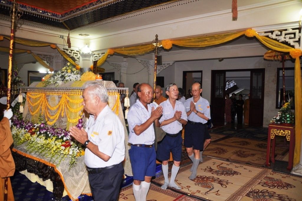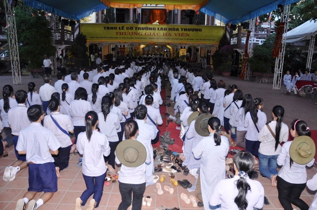 Vào lúc 16h30, gần 1000 Huynh trưởng và đoàn sinh GĐPT Đà Nẵng do HTr cấp Tấn Thị Sơn Huỳnh Ngọc Lâm - Trưởng Phân ban GĐPT Đà Nẵng làm trưởng đoàn đã đến kính viếng, thọ tang cố trưởng lão HT Thích Giác Viên